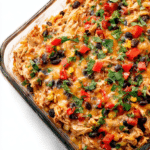 Easy Chicken Burrito Casserole is a hearty, one-dish Mexican-inspired bake loaded with shredded chicken, rice, beans, corn, and melted cheese for a comforting family meal.