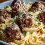 Garlic Butter Meatballs with Parmesan Linguine is a rich, comforting, and restaurant-quality dish that brings together tender, juicy meatballs, a silky garlic butter sauce, and creamy Parmesan-coated pasta. This recipe is designed for anyone who enjoys bold flavors combined with a luxurious texture, yet still wants a dish that is approachable and easy to prepare at home.