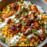 Street Corn Chicken Rice Bowl is a bold and flavorful meal featuring juicy seasoned chicken, creamy elote-style street corn, and zesty lime rice. It’s a perfect balance of smoky, creamy, and fresh flavors.
