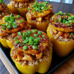 Teriyaki Pineapple Chicken and Rice Stuffed Peppers are a vibrant, flavorful, and nourishing oven-baked dish that perfectly balances sweet and savory elements. This recipe combines tender shredded chicken, fluffy rice, juicy pineapple, and rich teriyaki sauce, all packed into colorful bell peppers and baked until tender and slightly caramelized.